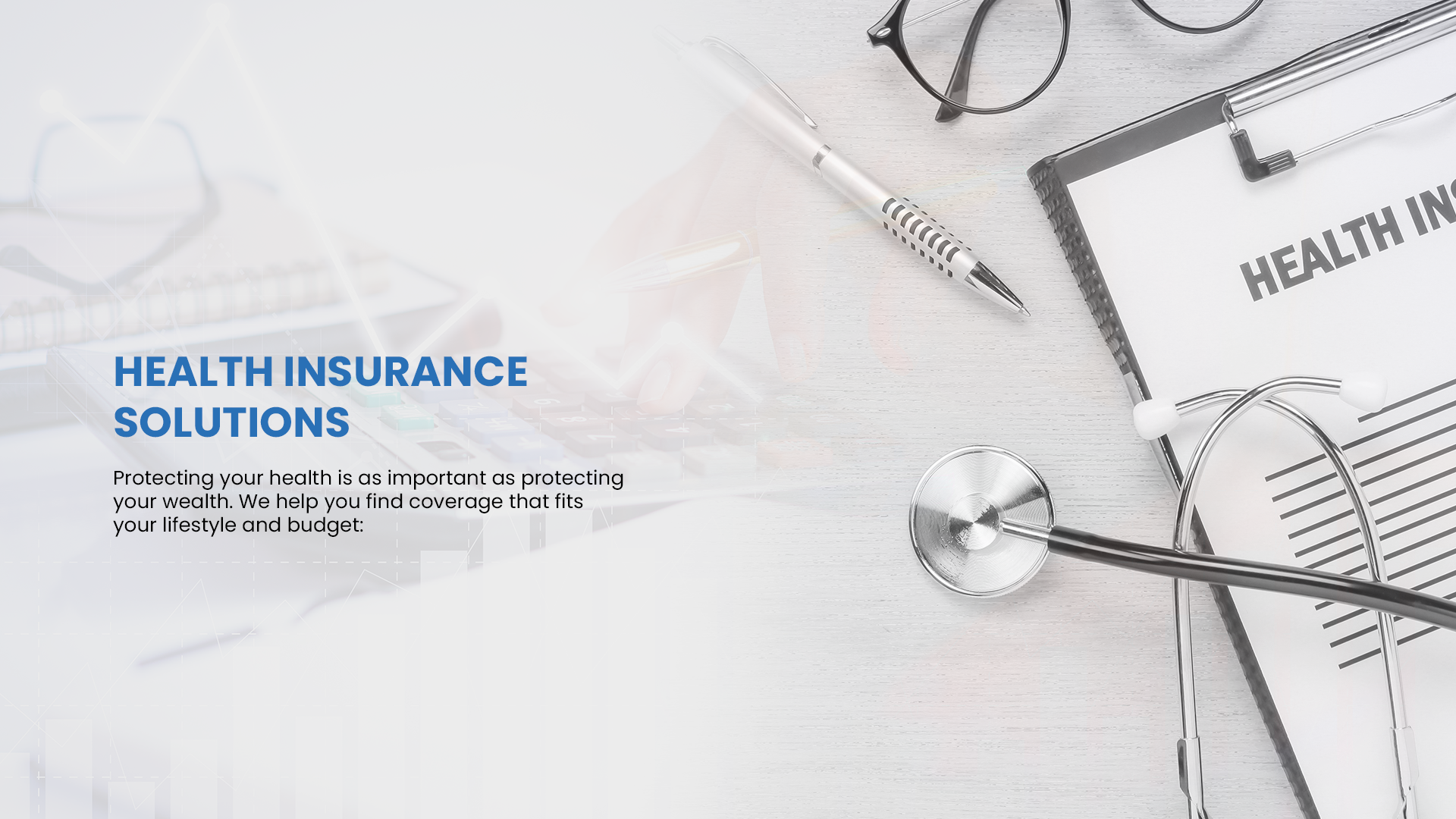 Protecting your health is as important as protecting your wealth. We help you find coverage that fits your lifestyle and budget: